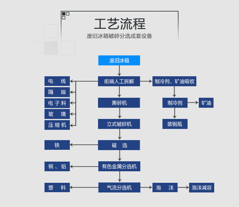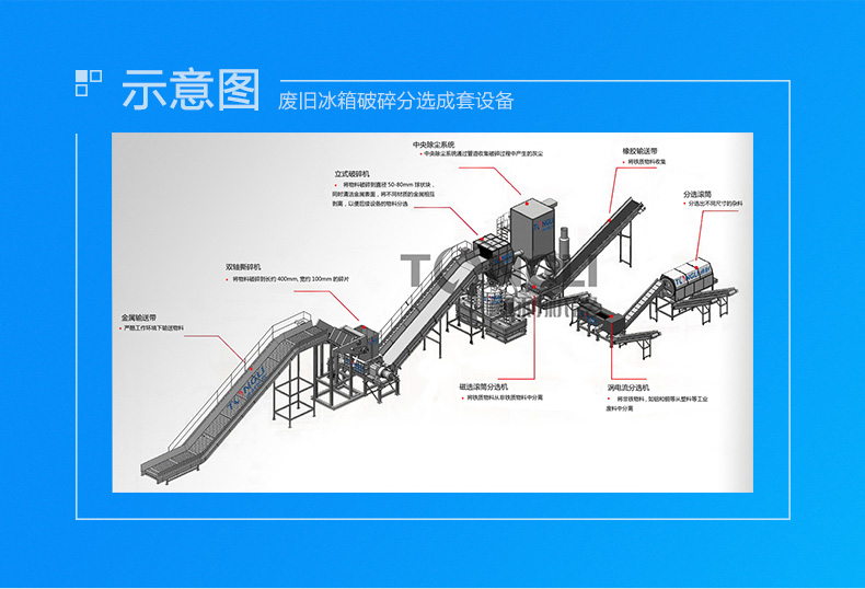 廢舊冰箱破碎分回收成套設備
